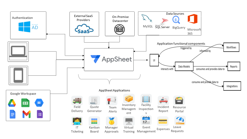 • Hubungkan Data ke AppSheet: Buka AppSheet, pilih Make a new app → Start with your own data, lalu hubungkan ke file Excel/Google Sheets Anda.